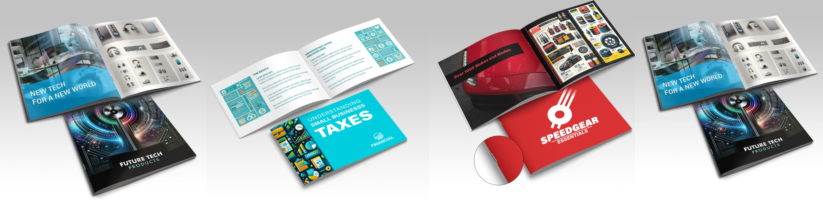 Premium opaque uncoated booklets are available in three sizes, with page counts of up to 52 pages. We have various finishing