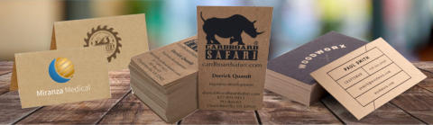 Thick, rich, light brown kraft paper has natural fibers and subtle visible flecks to give brown kraft business cards an organic look and