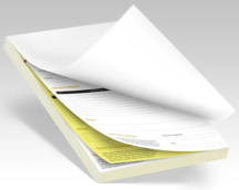 coated with micro-encapsulated dye or clay that react to pressure when written or printed on, transferring the text to the underlying sheets.