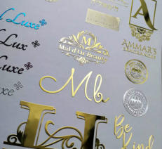 CNC cut floating metal labels. Simply peel and