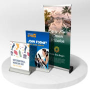 Roll-up banner stands are a hassle-free way to communicate your message. Effortlessly roll them up for easy transport and display at