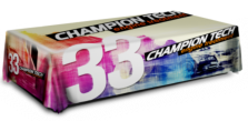 TABLE THROW These can either be in 2 sides or printed all 4 sides. On 3 sides, one long edge is kept open. Printed on 9oz polyester. 3 sided at $360 (68”x132”) 4 sided at $475 (90”x132”)
