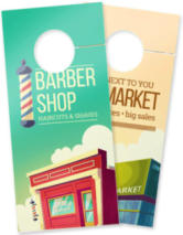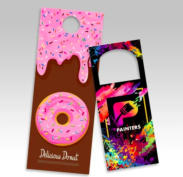 DOOR HANGERS Maximize the impact door-to-door and hang their messaging where it can’t be missed. Door hangers are a tried and true way to reach new your potential clients and get marketing material into new hands. CDN Printing custom door hangers are printed on durable paper stock with the option to print on both sides, allowing ample space for text and visuals to maximize marketing impact.