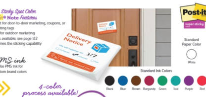 Post-It® Note Pads • 1 side printing 1 standard ink colour • Standard canary stock (Other stock type and colours extra) • Padded on short edge 50 sheets per pad • 4”x3” (Horizontal or Vertical) Print time: 12 business days CDNN