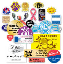 Stickers & Shaped Labels Individually cut. Paper or waterproof vinyl. Quantities on some starting as few as 25