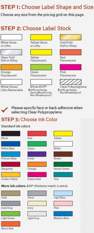 For Example: 10,000 labels total and you need 500 of each design, you may save up to 70%