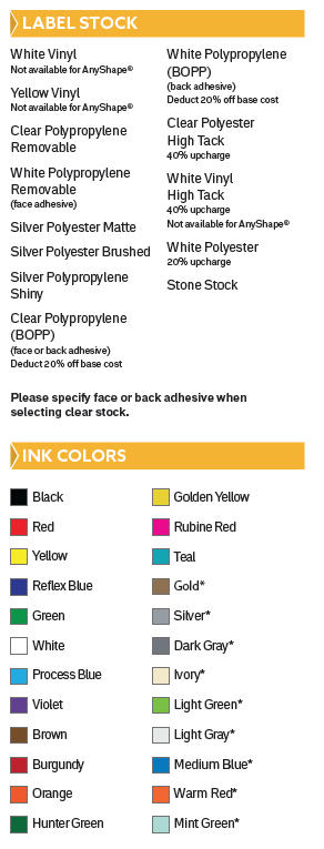 Printed on durable vinyl, polypropylene or polyester stocks.