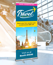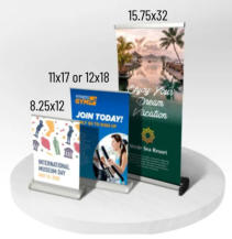 Roll-up banner stands are a hassle-free way to communicate your message. Effortlessly roll them up for easy transport and display at