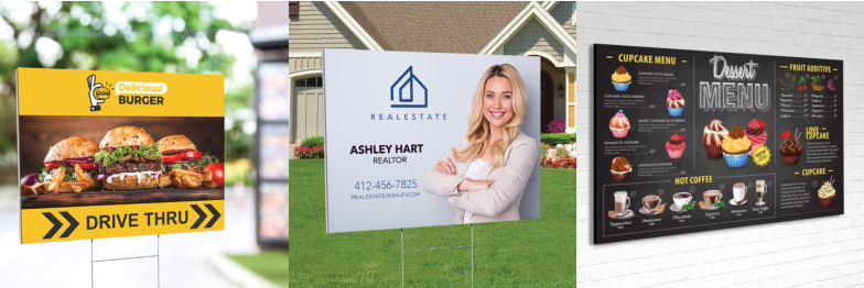 SPECIFICATIONS: Full colour printing on 1 or 2 sides Width from 6” to 48” Height from 6” to 96” 4mm thick FREE basic designing (20+ Signs) Grommets optional Print time: 3-4 business days Rush available