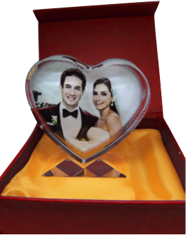 flowers. This 4”x4” heart crystal is imprinted in full colour giving an illusion that the