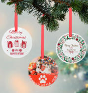We also offer custom shaped and personalized wood tree ornaments or etched directly onto natural wood. This are terrific. Ask our team or go to our WOOD CREATION SECTION.