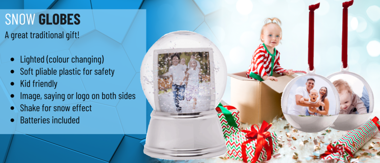 SPECIFICATION INCLUDES 2.5 x 2.5” circle ball shape Insert size 2” x 1.75” (changeable) Shiny silver plastic base. Globe is soft pliable plastic surface so it’s kid friendly! This is NOT glass snow globe. Lighted (changes colour) Batteries included Print time is 4 business days ONLY $39.95